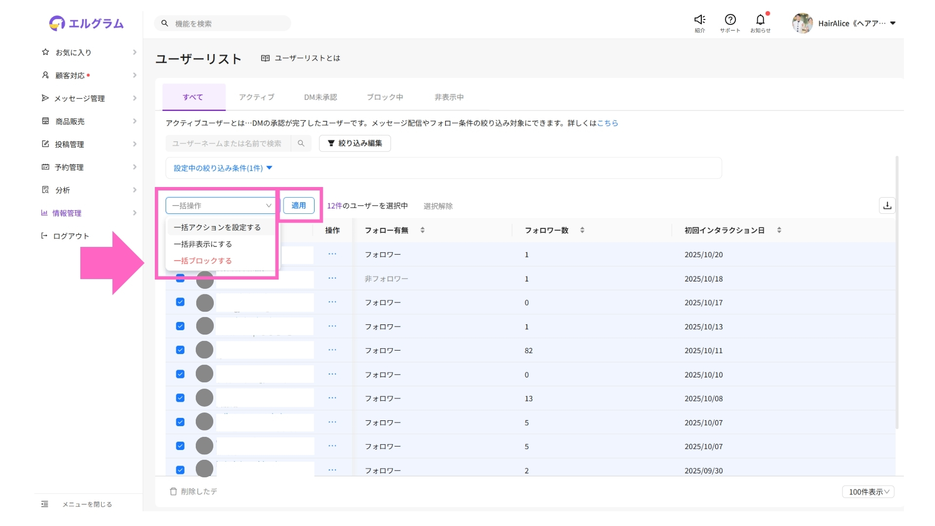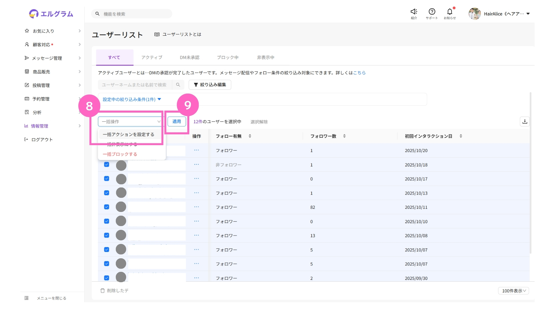 今回は、ユーザーリストからお客様に一括・個別で対応する方法を解説します。
