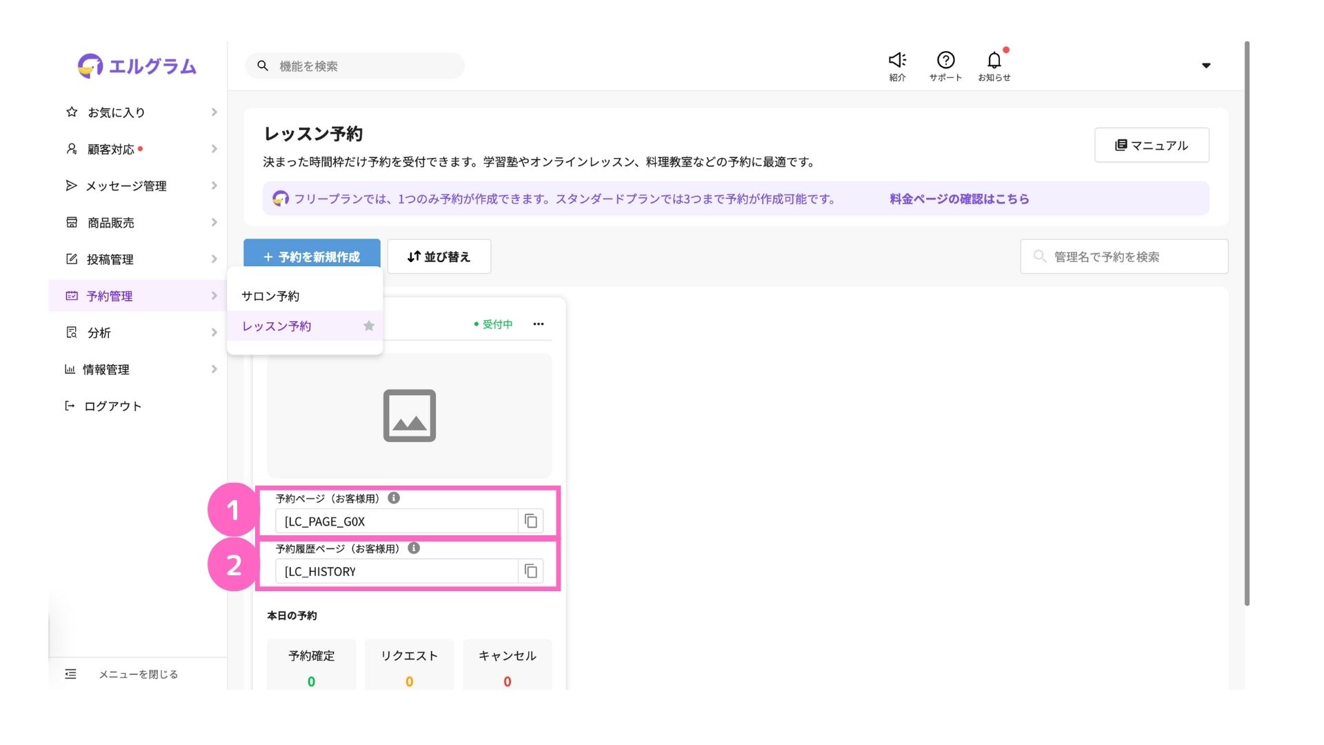 予約ページをお客様へ共有する場合、エルグラムからの送信が必須です。