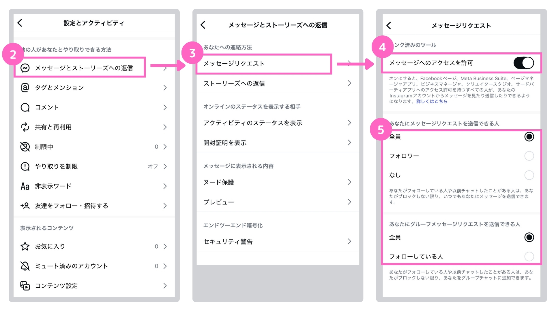 ④メッセージへのアクセスを許可をオンにする