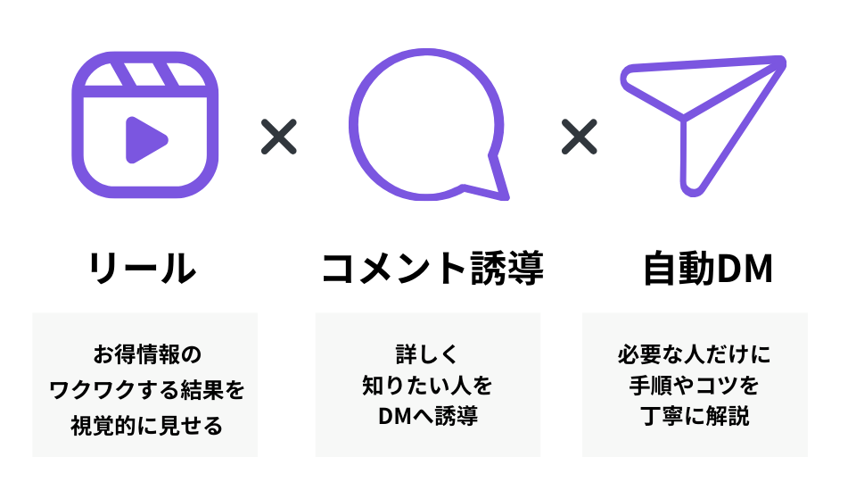 私が実践しているのは「リール × コメント誘導 × 自動DM」の三段構えす。