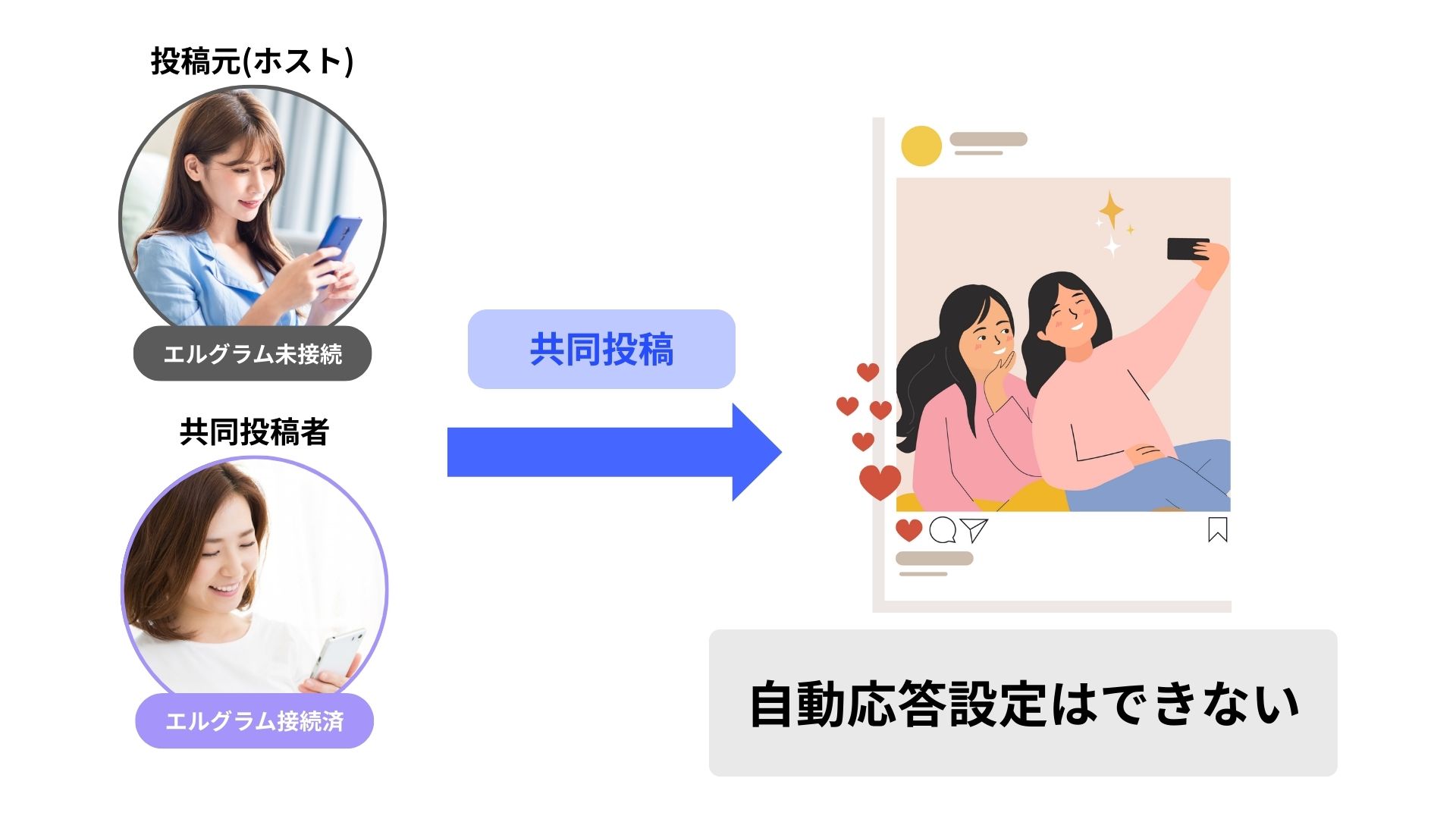 共同投稿者がエルグラムと接続したアカウントでも、自動応答の設定はできません。
