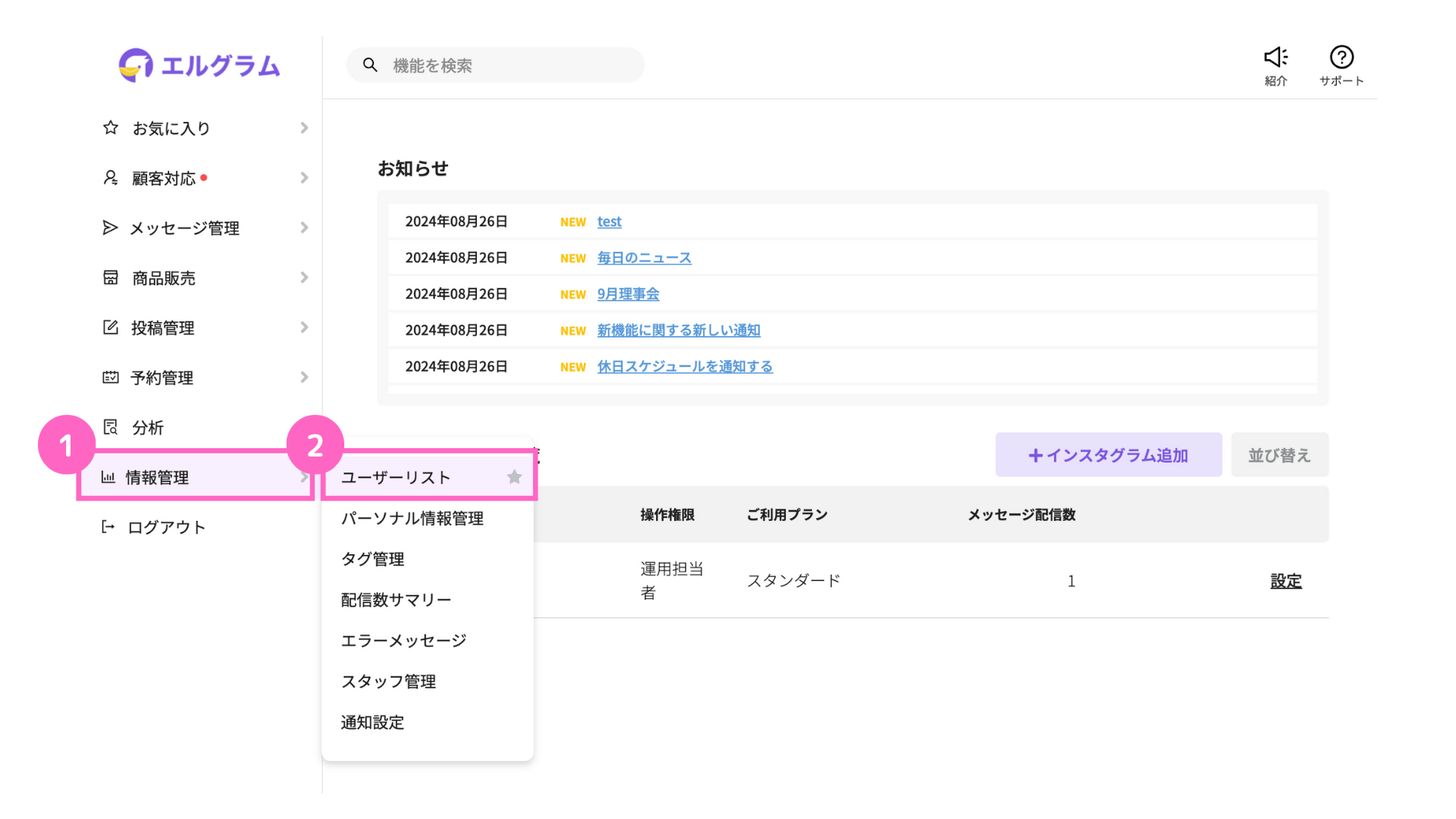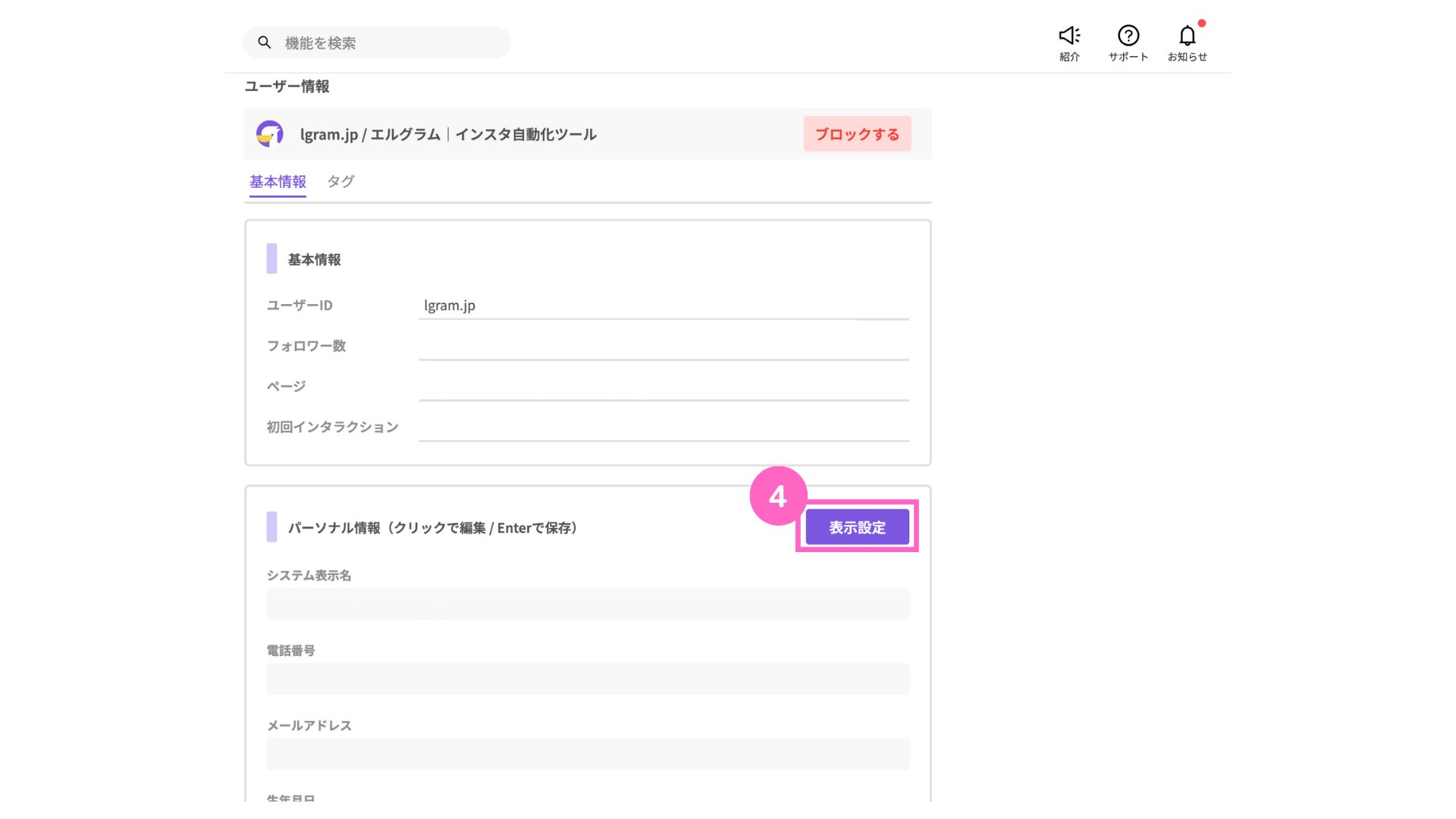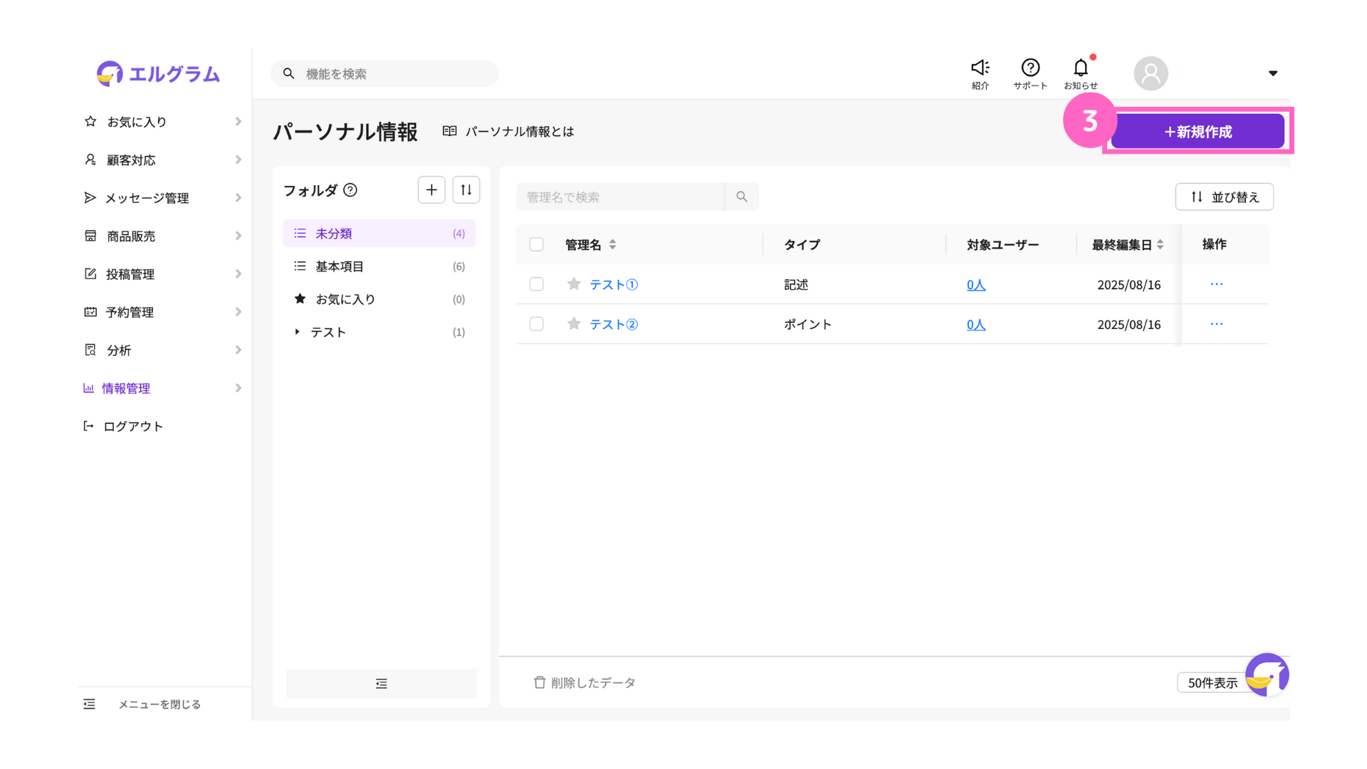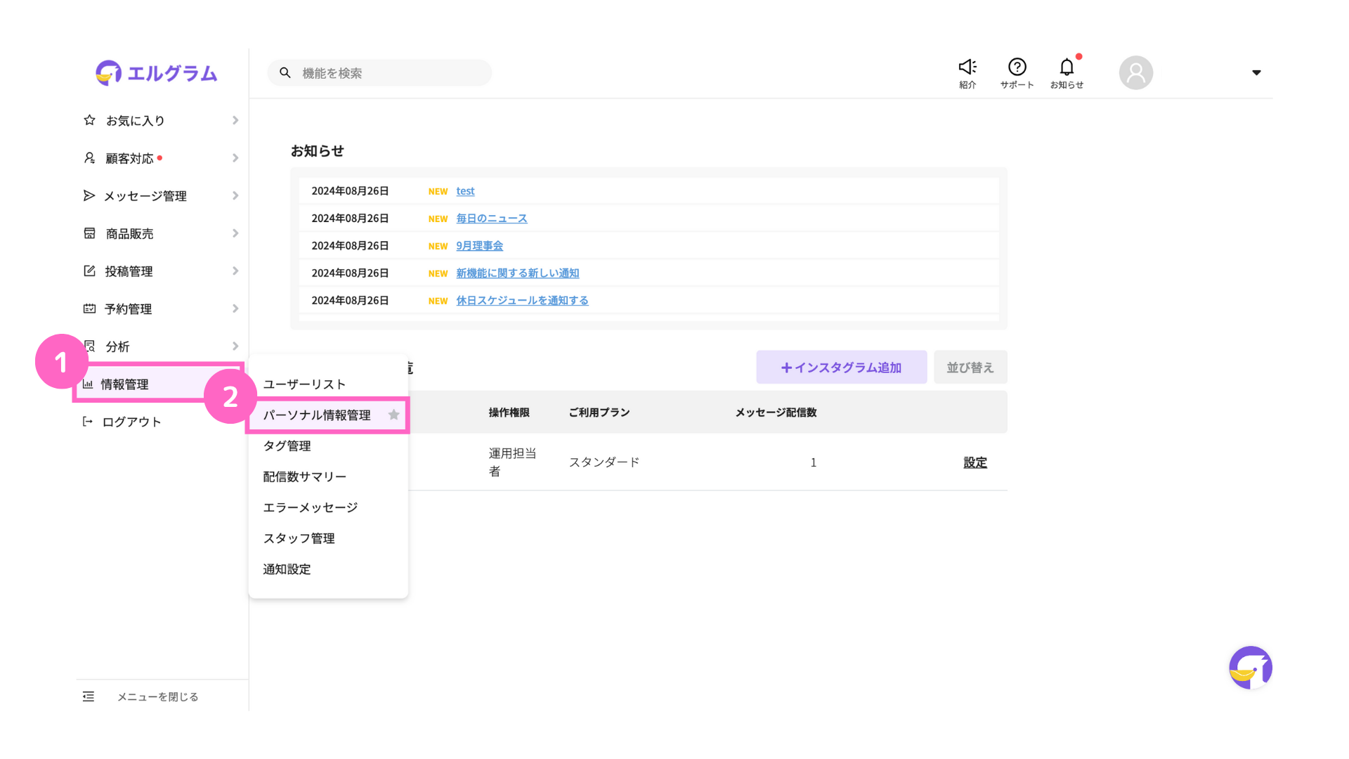 エルグラムの他機能から、パーソナル情報を紐づけることも可能です。
