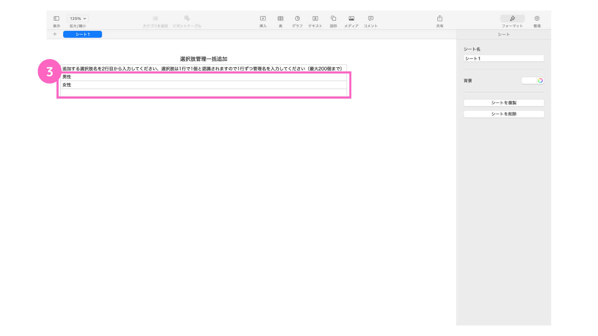 選択肢を一つずつ追加する場合は、こちらを選択してください。