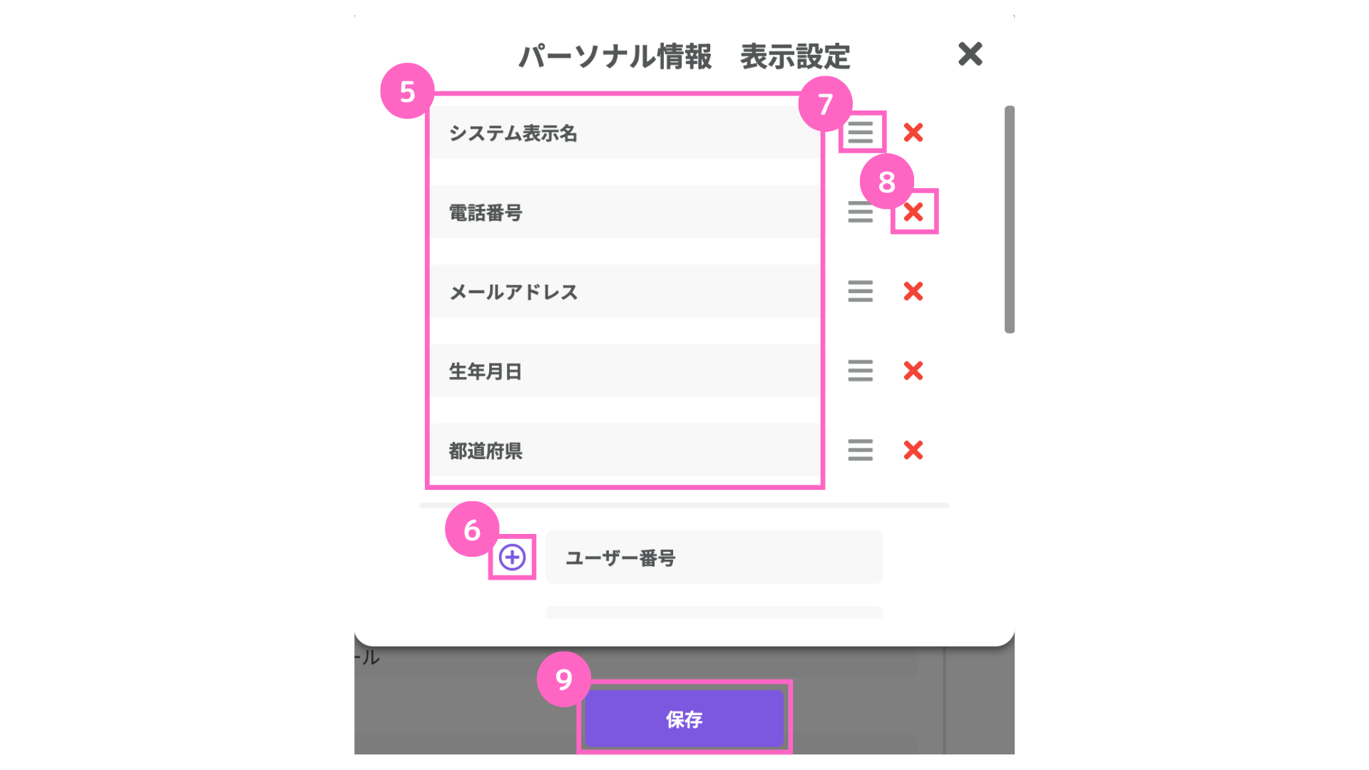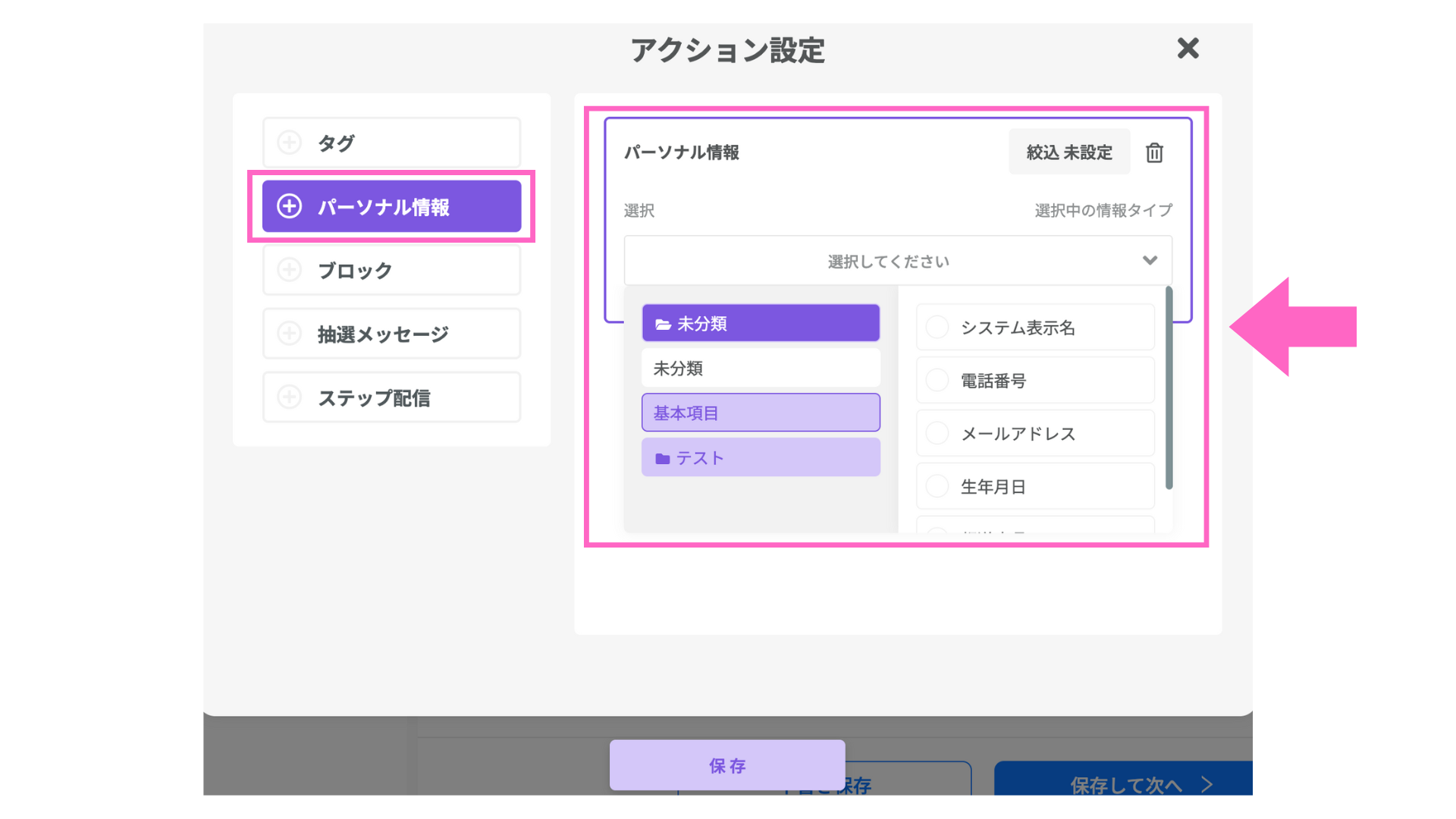 ⑥紐付けしたいパーソナル情報の「+」をクリック