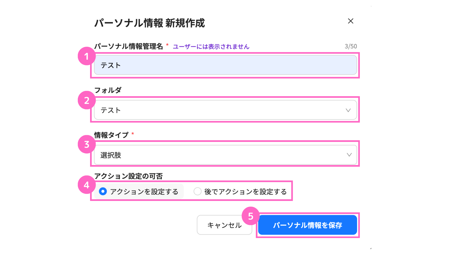 パーソナル情報管理とは、ユーザーごとに個別の情報を紐付けて管理できる機能です。