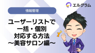 この記事では、美容サロンでのユーザーリストの活用方法を解説します。ユーザーリストとは?ユーザーリストは、エルグラムに登録されているユーザーを一覧で表示できる機能です。さらに「絞り込み」機能を活用することで、特定の条件を持ったユーザーだけを抽...