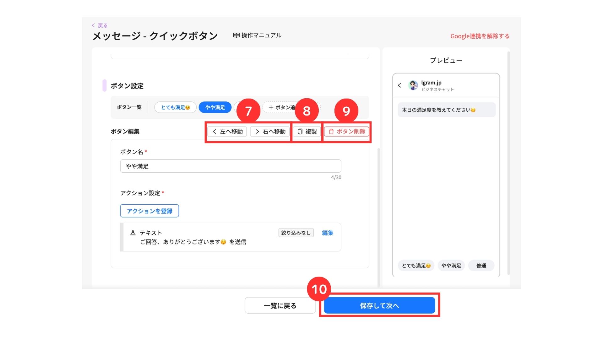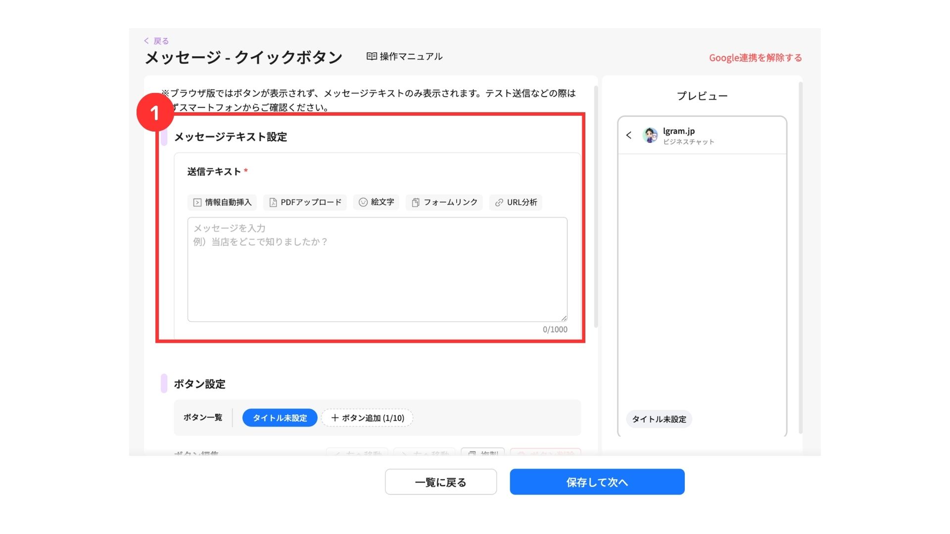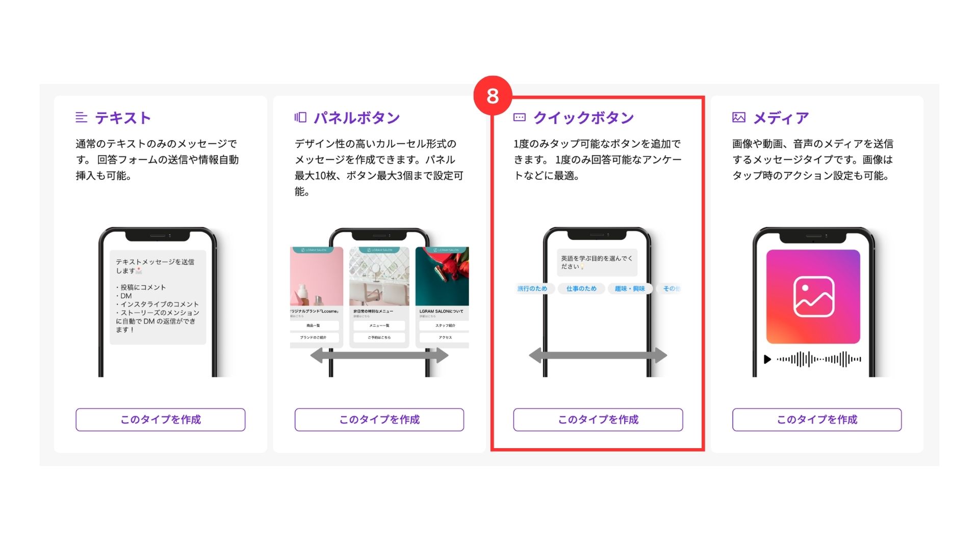 クイックボタンは、ユーザーが1回だけタップできるボタンを設置でき、複数の質問をするアンケートなどを設定する場合に便利な機能です。