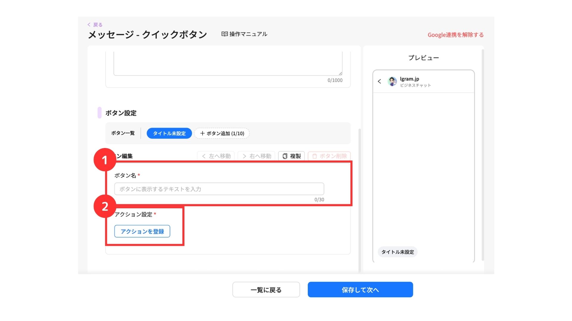 ①ボタン名を入力