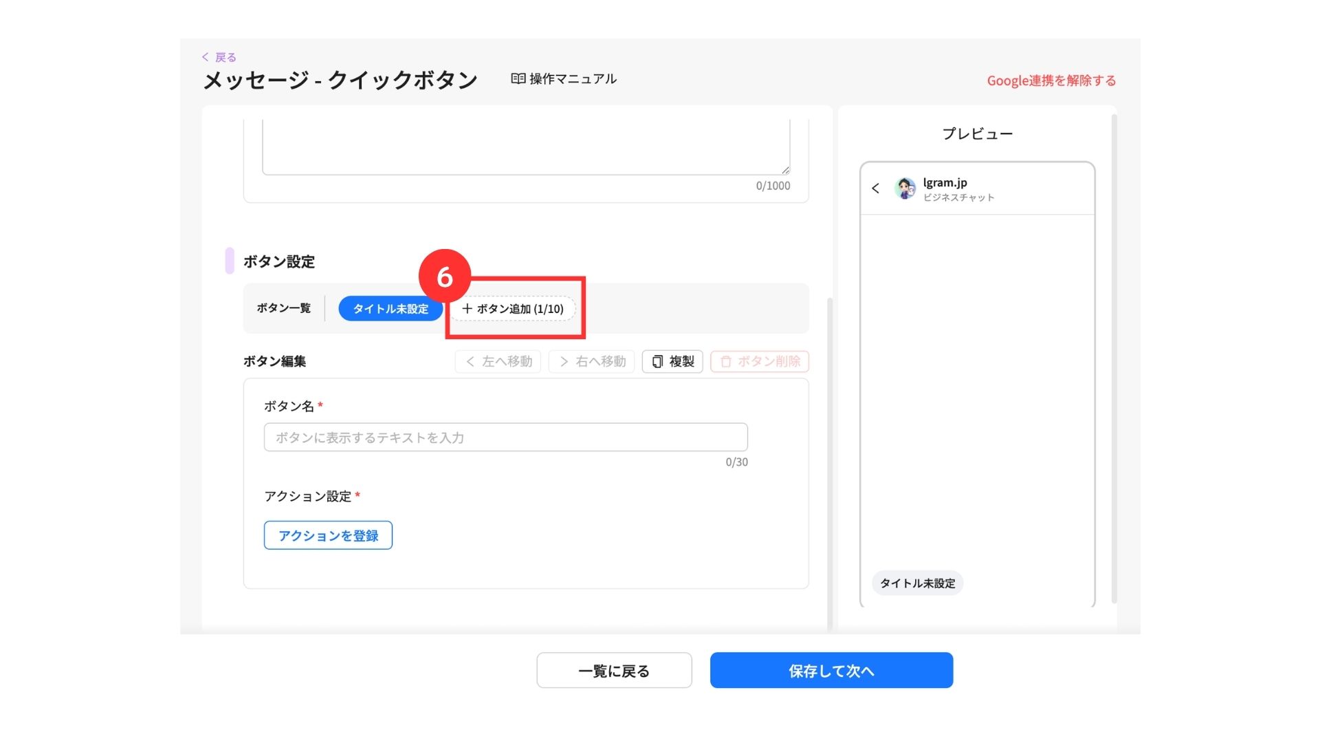 ⑥ボタンを追加する場合は「+ボタン追加」をクリック