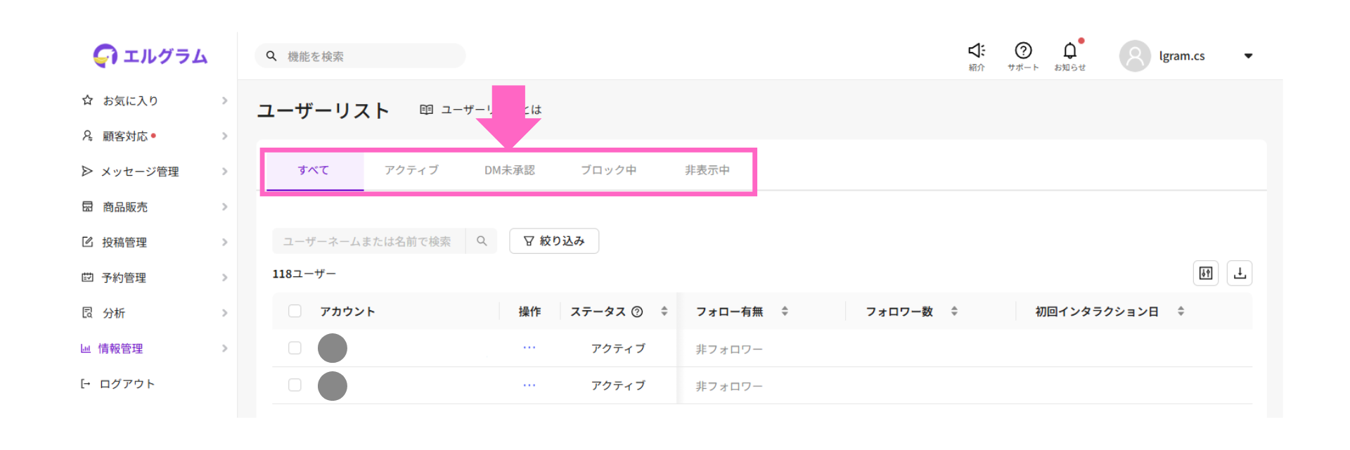 エルグラムのユーザーリストは、エルグラムに登録されているユーザーを一覧で表示できる機能です。