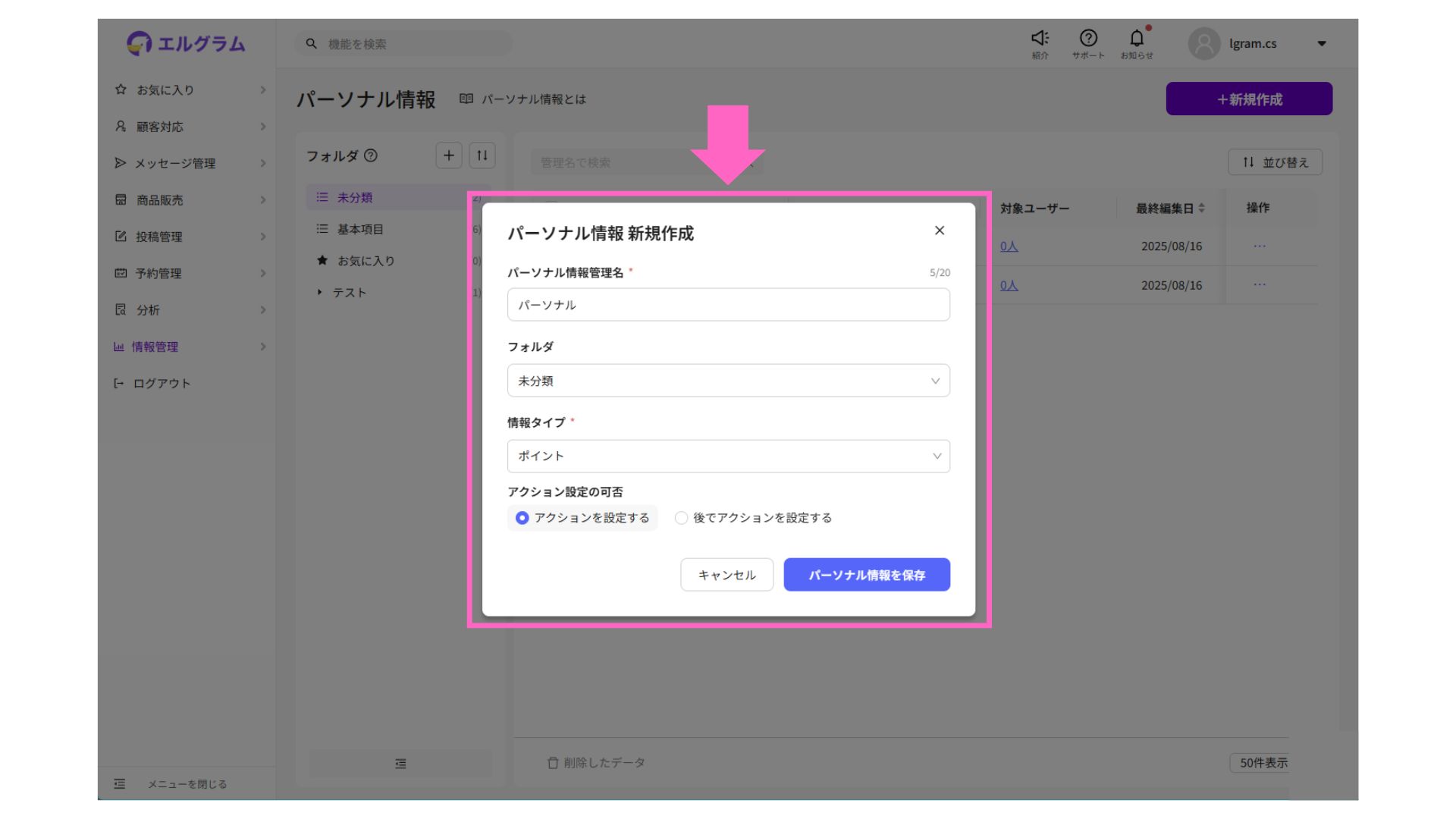 パーソナル情報管理は、ユーザーごとに個別の情報を紐付けできる機能です。