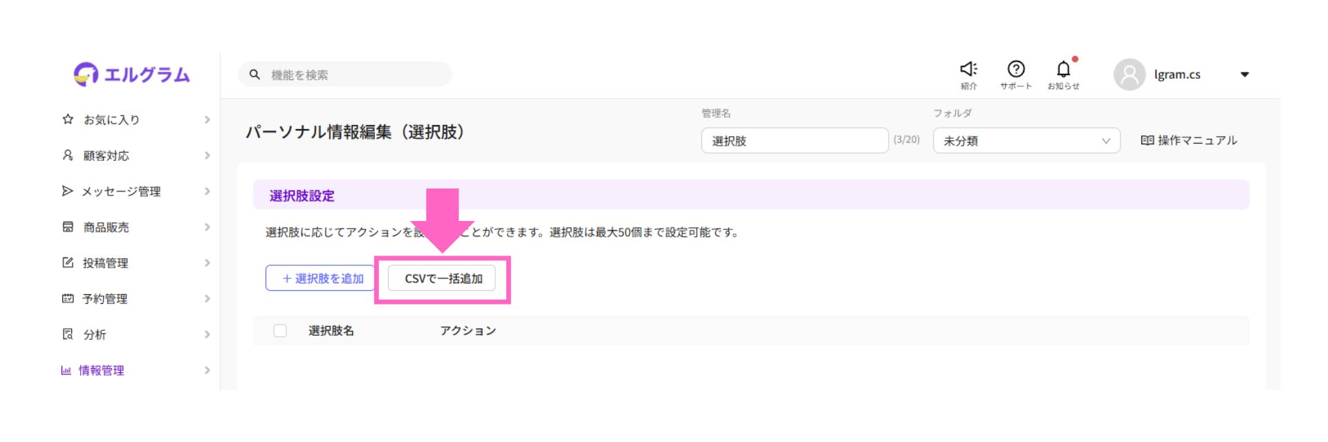 選択肢をCSVで一括アップロードできるようになりました。
