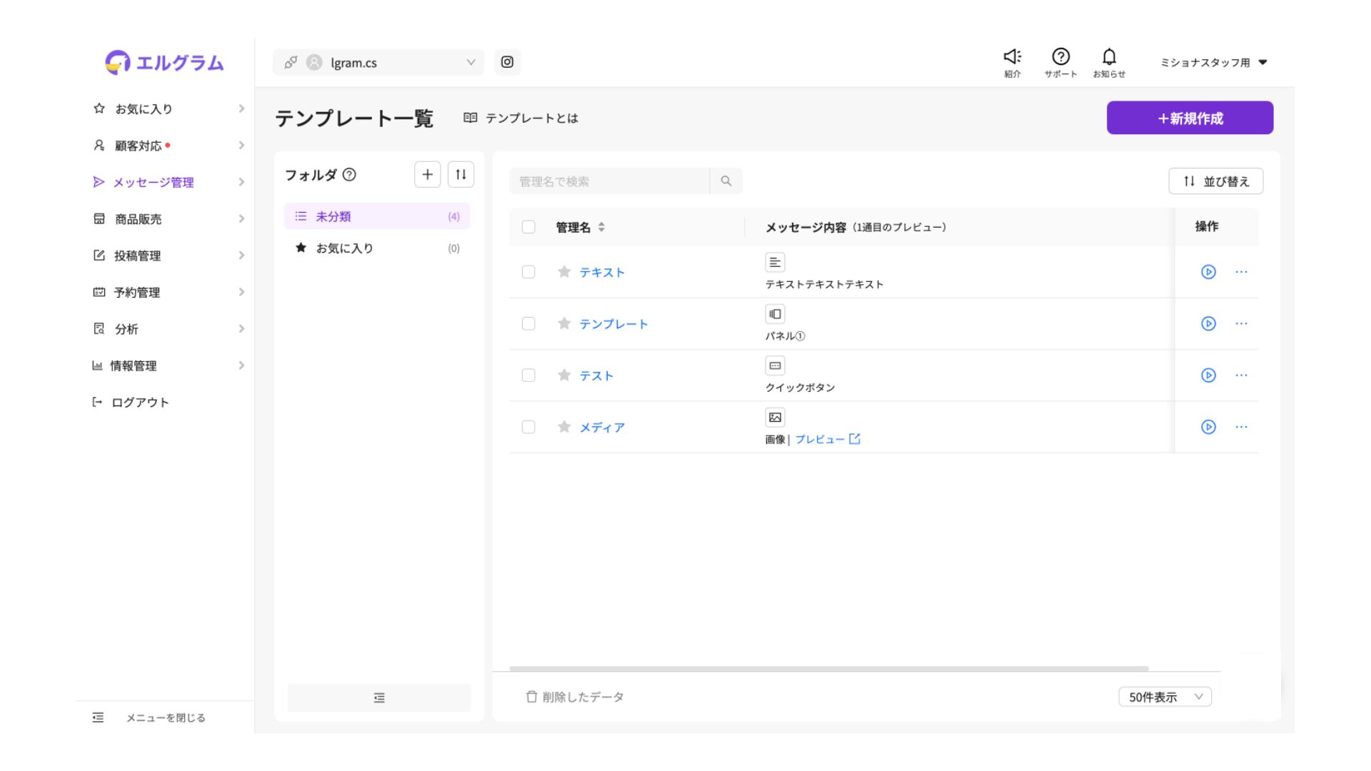 サイドメニューのメッセージ管理>テンプレートから操作が可能です。