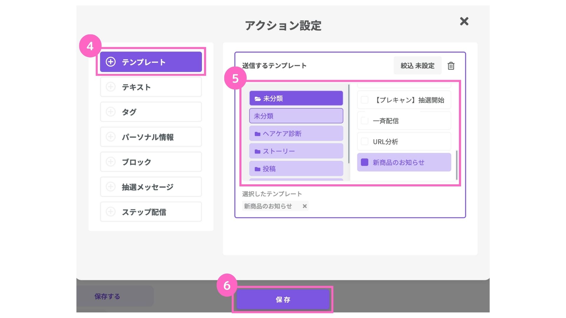 今回は、美容サロンで新商品の案内をする場合を例に設定方法を解説します。