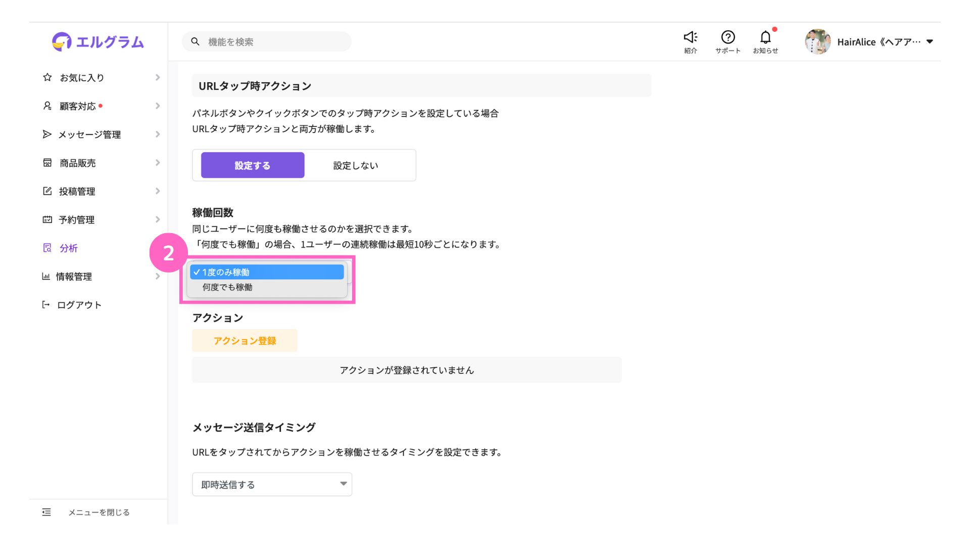 └ 1度のみ稼働 :同じユーザーには1回だけURLタップ時アクションを実行