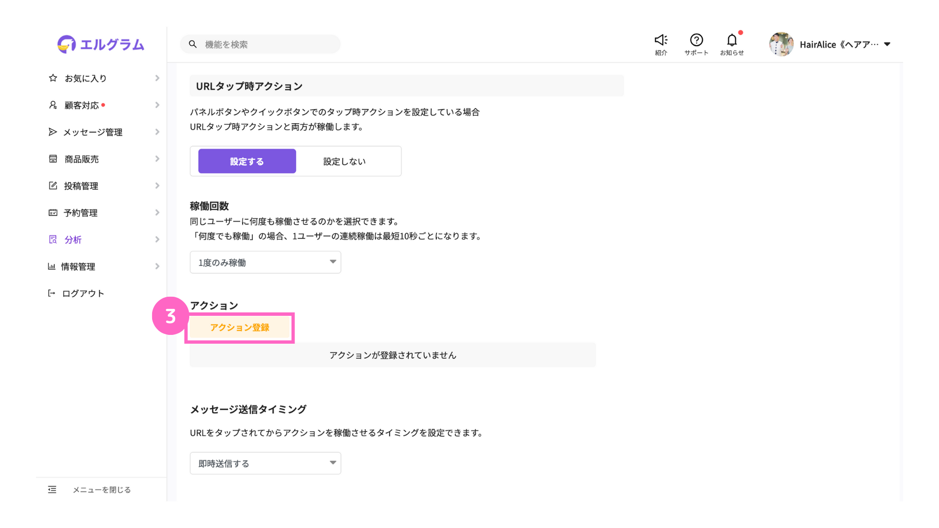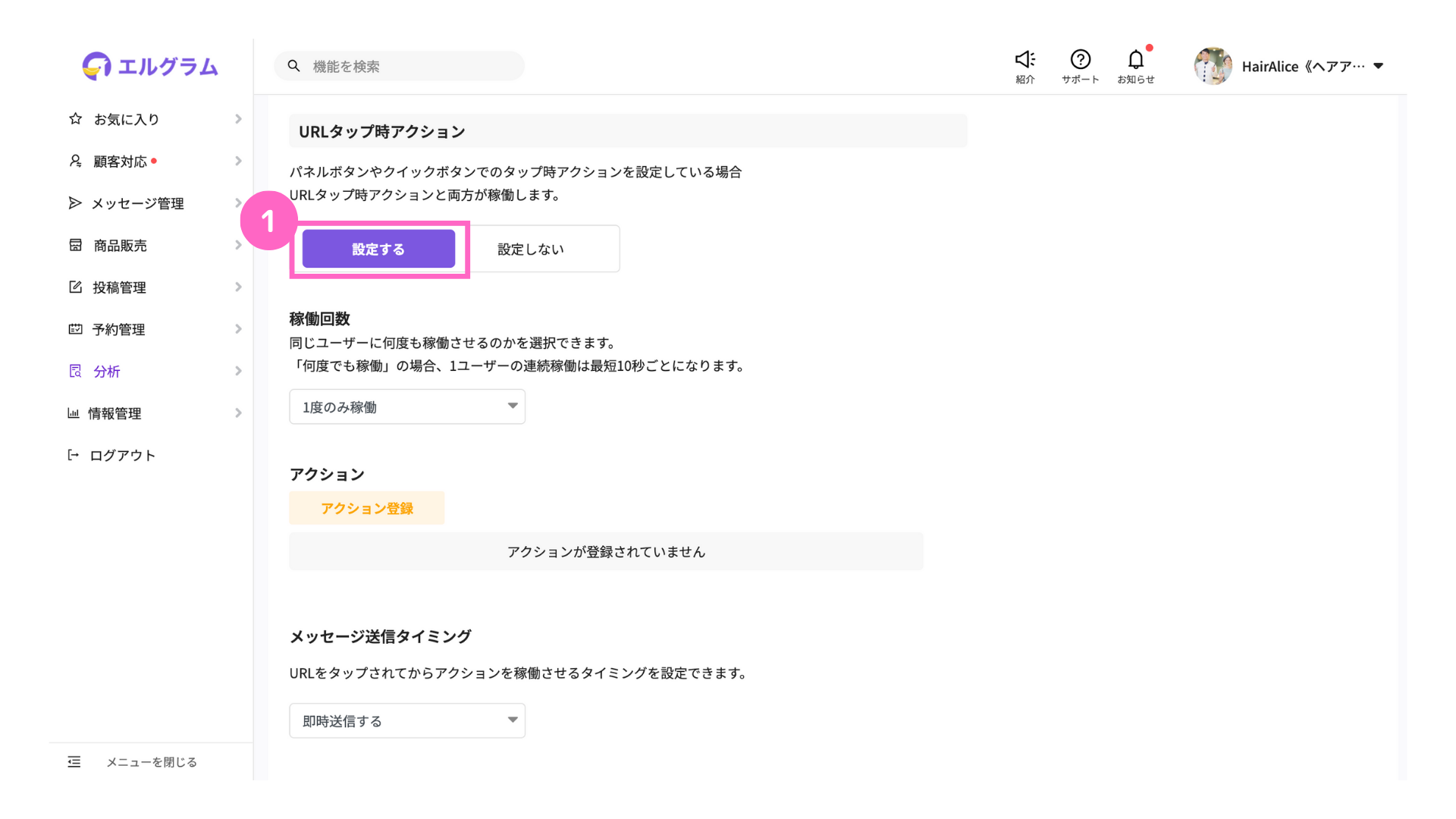 └ 設定する :ユーザーがURLをタップした際のアクションを追加
