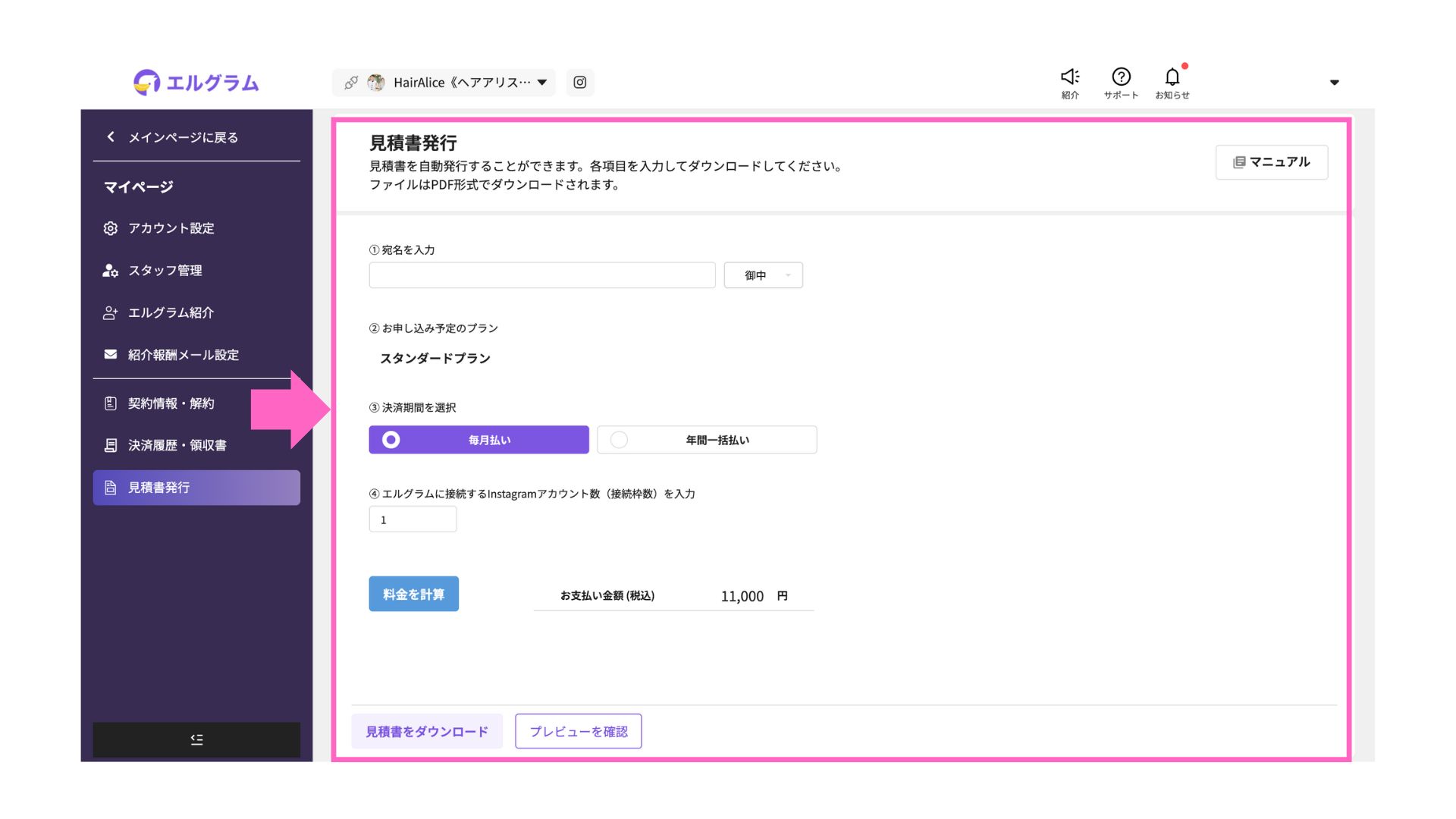 見積書の発行方法は、下記マニュアル記事よりご確認ください。