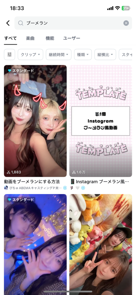 2.検索窓で「ブーメラン」と入力し、好みのテンプレートをタップ