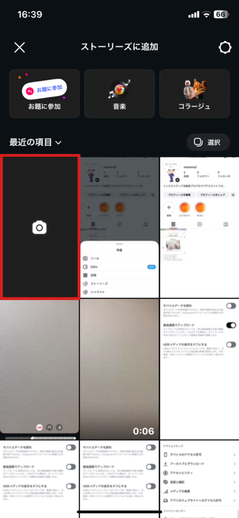 - 【新たに撮影する】ストーリーズでブーメランを撮るやり方