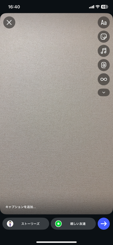 フィードやリールに活用したい場合は、いったんストーリーズで作成したうえで端末に保存し、あらためて投稿する必要があります。あるいは、外部ツールで編集してからアップロードする方法もあります。