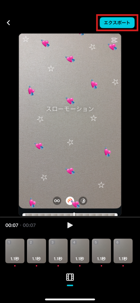 6.必要に応じて編集を行い、右上の「エクスポート」をタップし、ダウンロードする