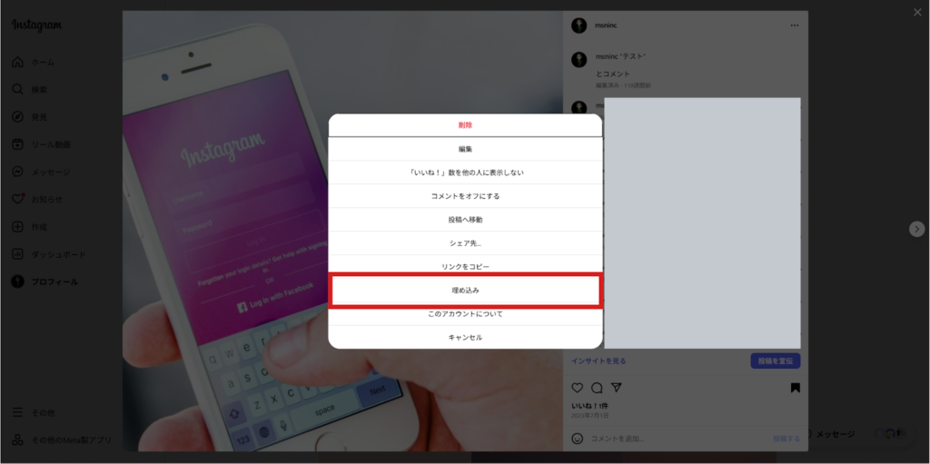 - Instagramの埋め込み機能について