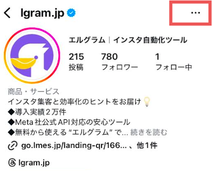 サブアカウントで目的のアカウントを検索し、プロフィールを表示すると、画面右上に【・・・】が表示されます。