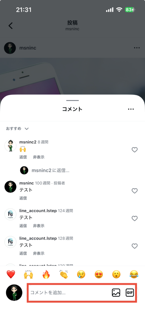 - Instagramのコメント機能の使い方