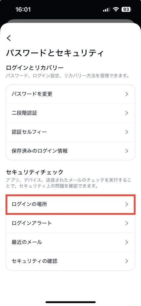 - 「ログインの場所」をタップする